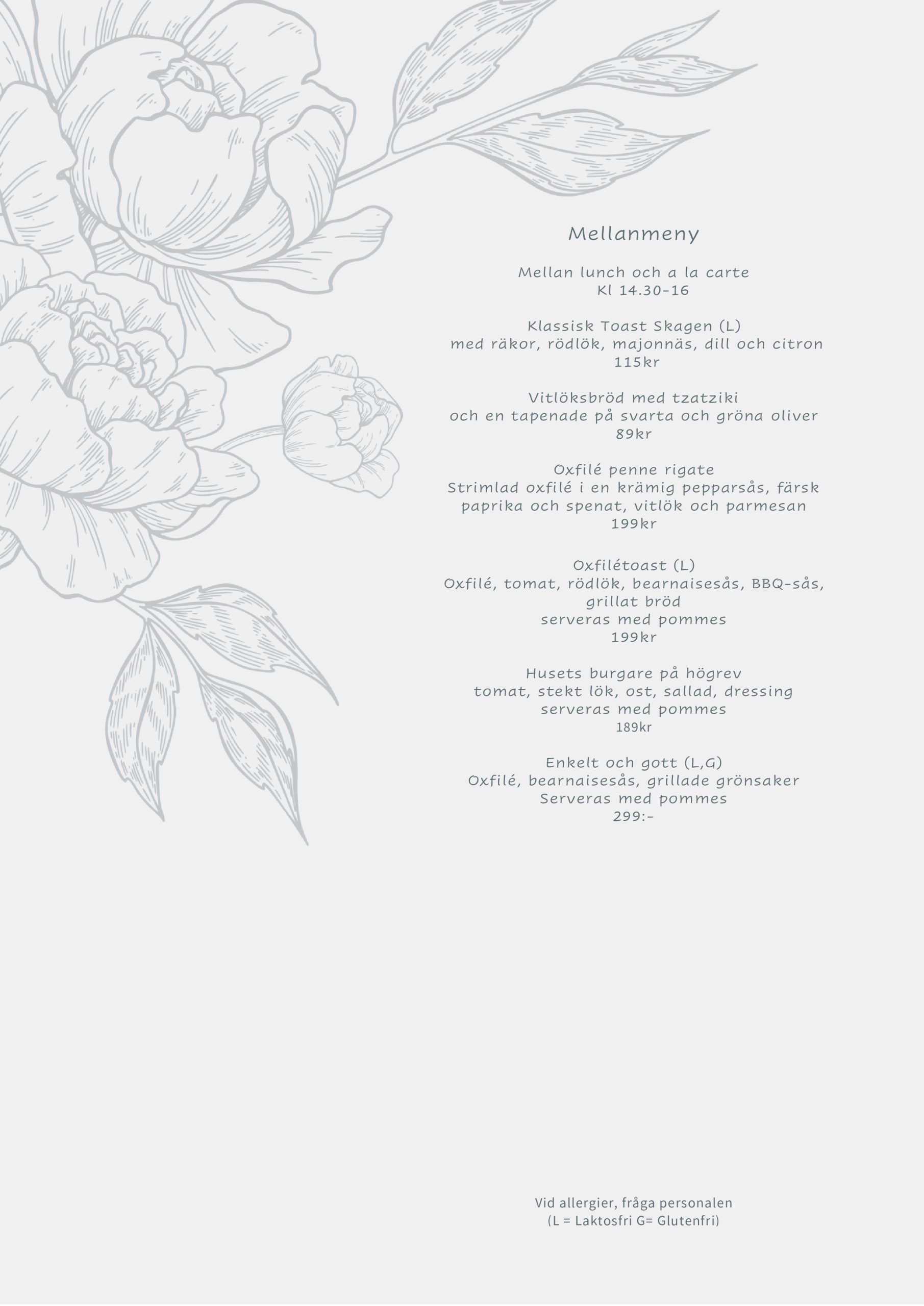 KÖKET ERBJUDER MELLAN LUNCH & MIDDAG
